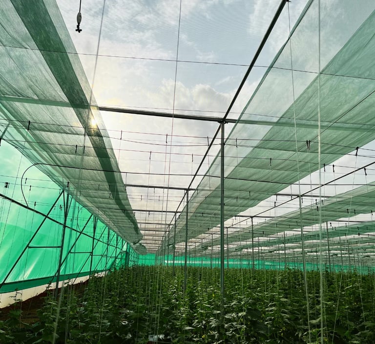 > A Flat Net House is a simple, economical, and highly effective protected cultivation structure designed to protect crops from insects, birds, excessive sunlight, and adverse weather conditions. It is an ideal solution for farmers who want to improve crop quality and yield with low investment and easy maintenance.